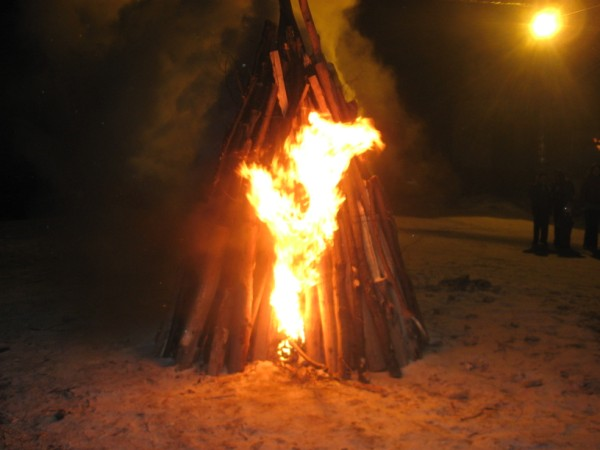 Сем паљења и намењивања ватре, и општег весеља уз музику, овај обичај је, иначе, у осталим елементима потпуно истоветан са даћом („поманом“) која се даје покојницима умрлим са свећом у руци. То значи да садржи, као основне елементе, излазак на гробље ради буђења и призивања покојника, намењивање одеће и ствари за личну употребу, затим „пуштање“ воде и на крају саму „поману“, односно обредну трпезу са култним јелима.